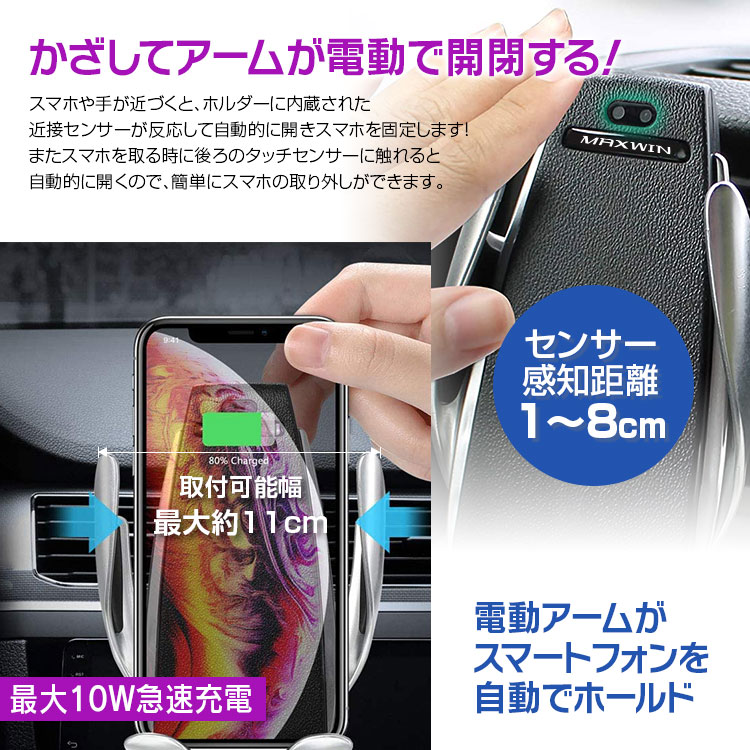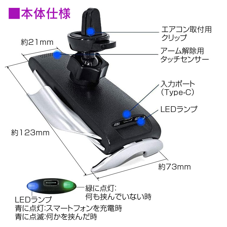 タッチ誘導技術を採用して、スマホを感知して自動でアームが閉じ、スマホを固定します。また、スマホを取り出す時、物理的にボタンに触れると、キャッチ部が自動的に開くので、運転中でも片手で簡単にスマホを取り出せます。従来の赤外線センサー品の開閉誤動作などを防ぐことができます。