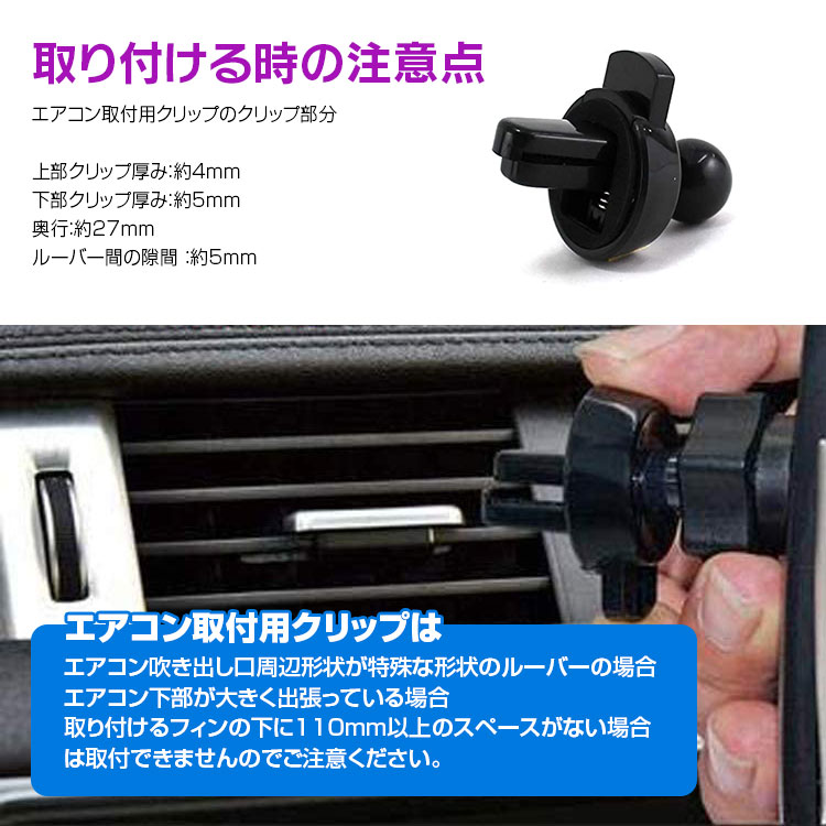 エアコン取付用クリップのジョイント部はボールタイプで360°自由に調整可能です。好きな角度で設置できます。