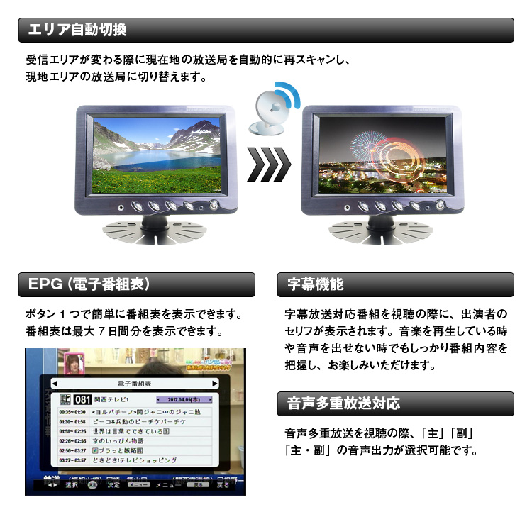エリア自動切替機能搭載